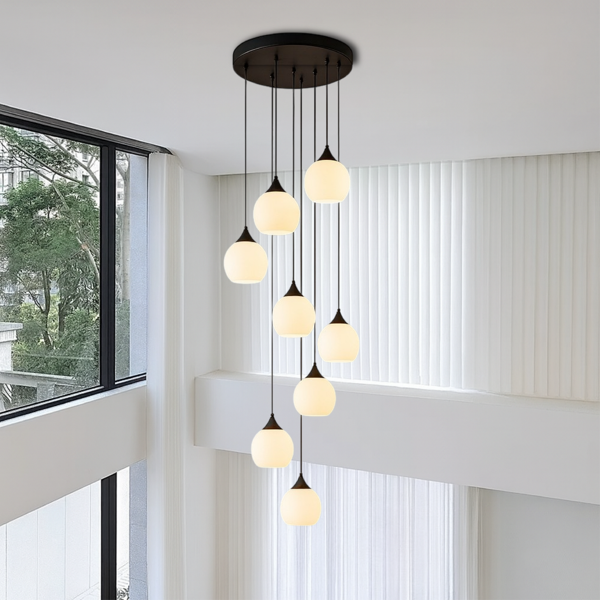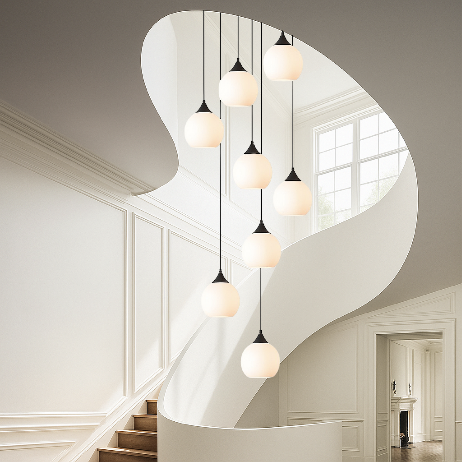 The soft light emitted by the LED bulbs creates a warm and welcoming atmosphere, illuminating your staircase or entryway with a sophisticated glow. This chandelier quickly becomes a focal point in your decor, elevating the beauty of your space with its timeless charm.