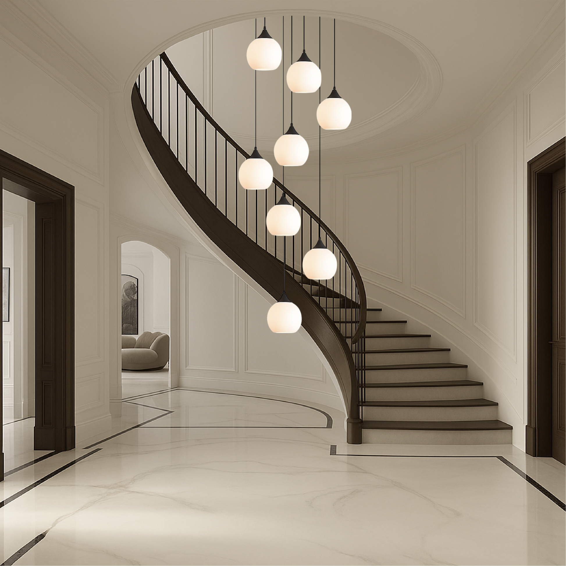 Discover the Gades Villa staircase chandelier, perfect for adding a luxurious and elegant touch to your staircase or hallway. Inspired by classic design, this chandelier combines intricate detailing with refined aesthetics, making it a statement piece in any home.